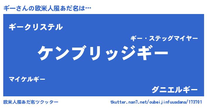| 男性向けラノベタイトル風あだ名 | 『Re:ギーから始める異世界生活』 |