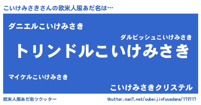| 女子向けラノベタイトル風あだ名 | 『こいけみさきの玉の輿計画!』 |