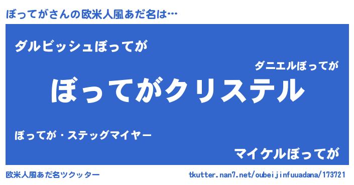 | 女子向けラノベタイトル風あだ名 | 『ぼってが伯爵の花嫁』『ぼってが恋絵巻』 |