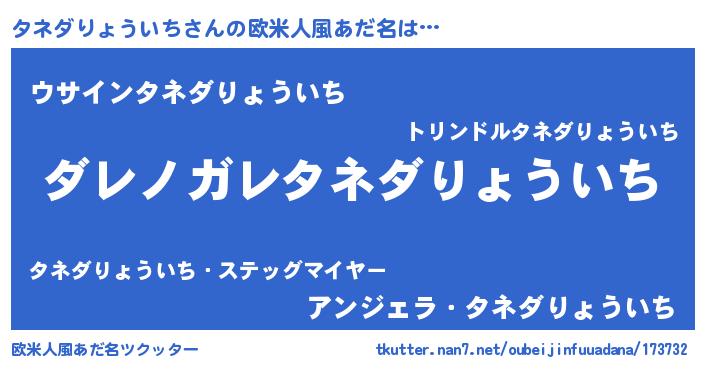 | 男性向けラノベタイトル風あだ名 | 『魔弾の王とタネダりょういち』 |