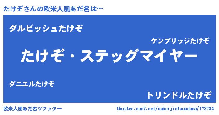 | ヒーロー風カッコイイあだ名 | 『ネオタケゾ』『サイバー戦士タケゾ』 |