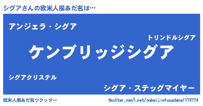 | 意味不明あだ名 | 『自称シグア』『なめこ科シグア属』 |