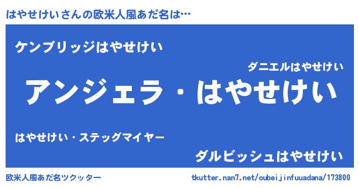 | 意味不明あだ名 | 『自称はやせけい』『永久保存はやせけい』 |
