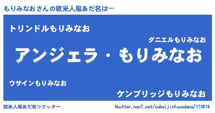 | 男性向けラノベタイトル風あだ名 | 『もりみなおに滅ぼされるだけの簡単なお仕事です』 |