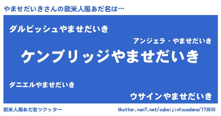 | 意味不明あだ名 | 『自称やませだいき』 |
