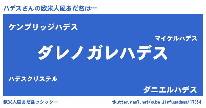 | ヒーロー風カッコイイあだ名 | 『仮面ハデダー』『最強戦士ハデス』 |