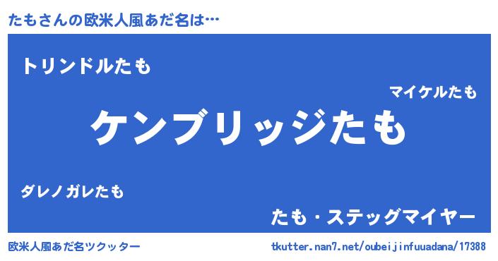 | 男性向けラノベタイトル風あだ名 | 『Re:たもから始める異世界生活』 |