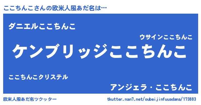 | 男性向けラノベタイトル風あだ名 | 『Re:ここちんこから始める異世界生活』 |
