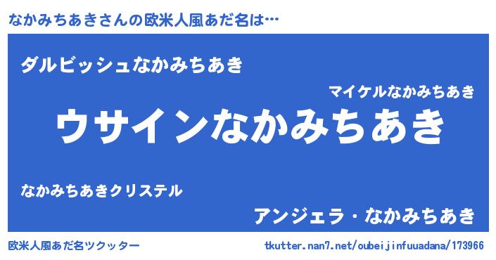 | 女子向けラノベタイトル風あだ名 | 『なかみちあきの卵を拾いまして』 |