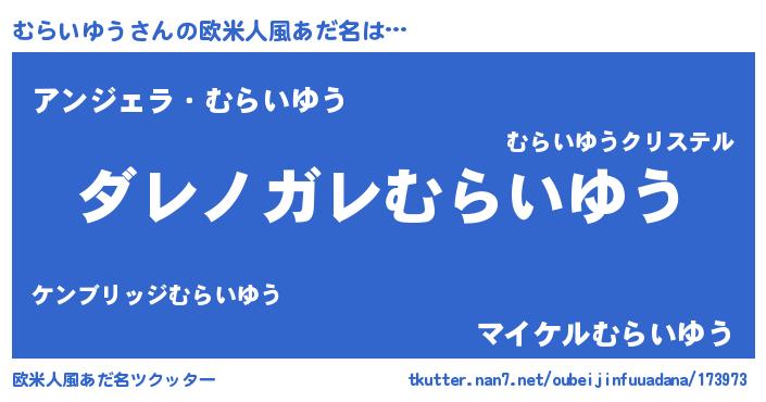 | 男性向けラノベタイトル風あだ名 | 『この素晴らしい世界にむらいゆうを!』 |