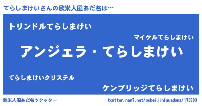| 男性向けラノベタイトル風あだ名 | 『てらしまけいに滅ぼされるだけの簡単なお仕事です』 |