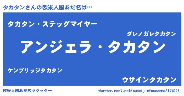 | 男性向けラノベタイトル風あだ名 | 『タカタンに滅ぼされるだけの簡単なお仕事です』 |