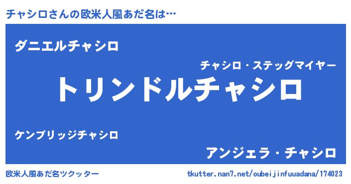 | 男性向けラノベタイトル風あだ名 | 『チャシロ~年齢イコール彼女いない歴の魔法使い~』 |