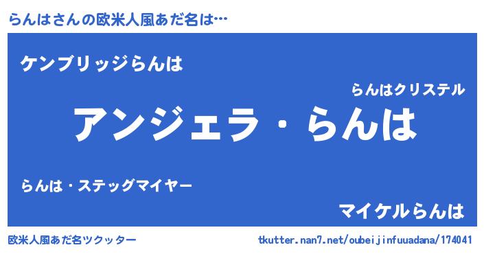 | ヘコむあだ名 | 『らんにゅー』『豆乳』『らんは(爆)』 |