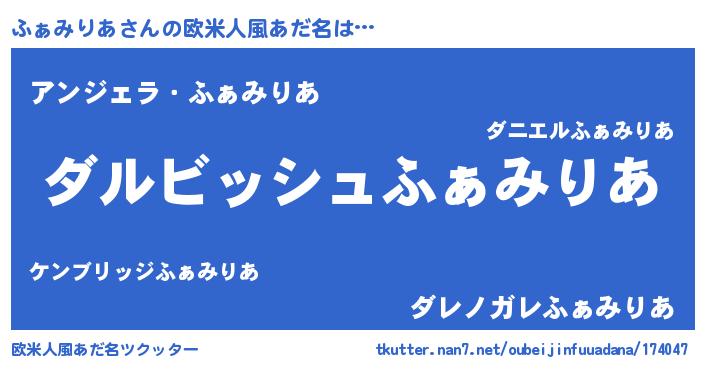| 意味不明あだ名 | 『永久保存ふぁみりあ』『自称ふぁみりあ』 |