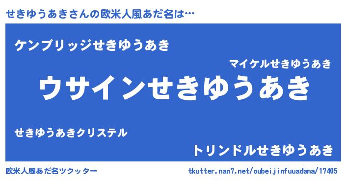 | 男性向けラノベタイトル風あだ名 | 『せきゆうあきの嫁は女の子じゃないと思った?』 |