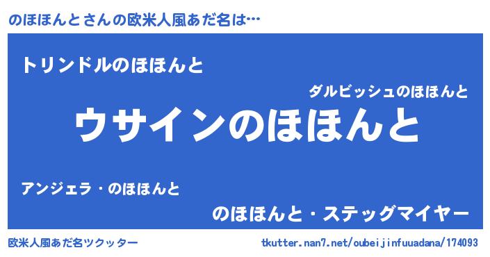 | 男性向けラノベタイトル風あだ名 | 『のほほんとの嫁は女の子じゃないと思った?』 |