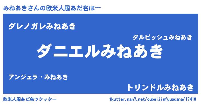 | 女子向けラノベタイトル風あだ名 | 『みねあき恋絵巻』『みねあきの契約王妃』 |