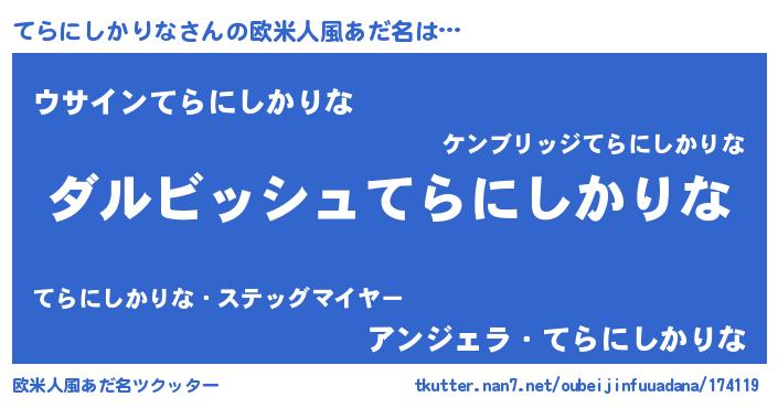 | 意味不明あだ名 | 『永久保存てらにしかりな』 |