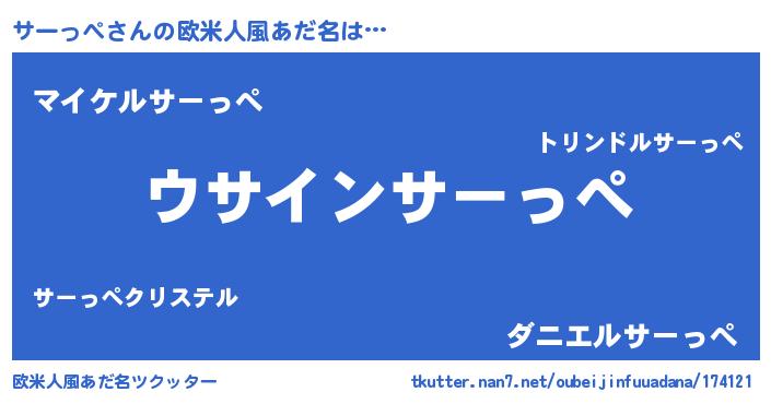 | 男性向けラノベタイトル風あだ名 | 『サーっぺの嫁は女の子じゃないと思った?』 |