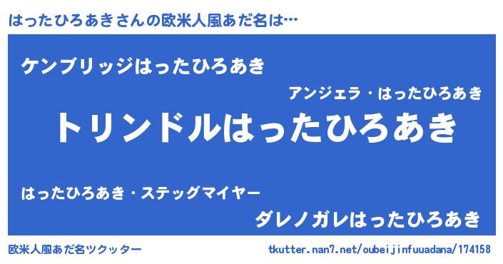 | 男性向けラノベタイトル風あだ名 | 『ハッタヒロアキスレイヤー』 |