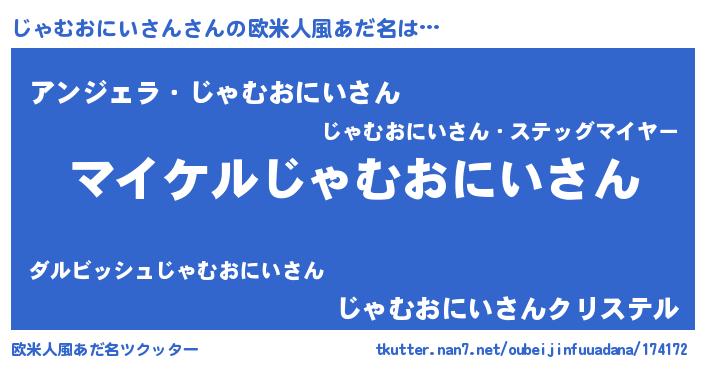 | 女子向けラノベタイトル風あだ名 | 『(仮)じゃむおにいさんのやんごとなき事情』 |