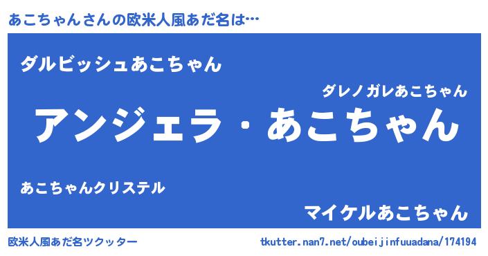 | 意味不明あだ名 | 『永久保存あこちゃん』 |