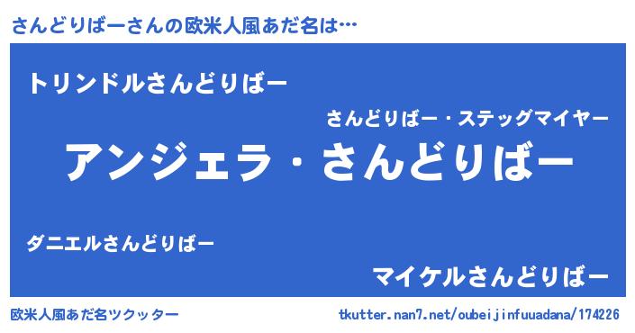 | 男性向けラノベタイトル風あだ名 | 『さんどりばーに滅ぼされるだけの簡単なお仕事です』 |