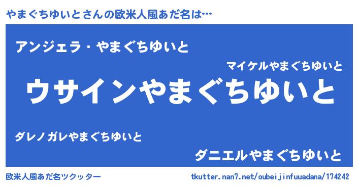 男性向けラノベタイトル風あだ名 | 『やまぐちゆいとの嫁は女の子じゃないと思った?』 |