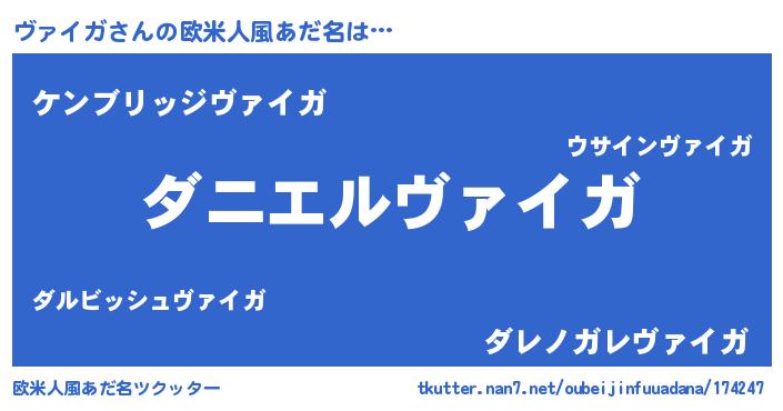 | 女子向けラノベタイトル風あだ名 | 『ヴァイガ恋絵巻』『闇のヴァイガ』 |