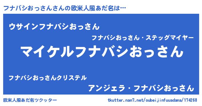 | 男性向けラノベタイトル風あだ名 | 『フナバシおっさんの憂鬱』 |