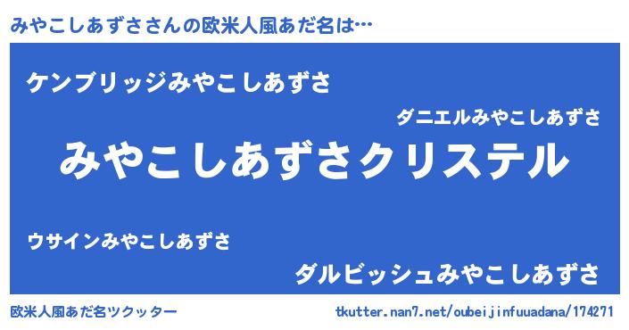 | 女子向けラノベタイトル風あだ名 | 『みやこしあずさの雑貨屋さん』 |