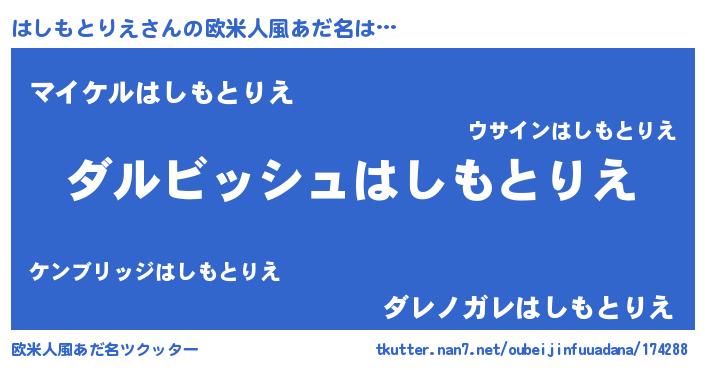 | ヘコむあだ名 | 『はしもとりえ(爆)』『はしもー』 |