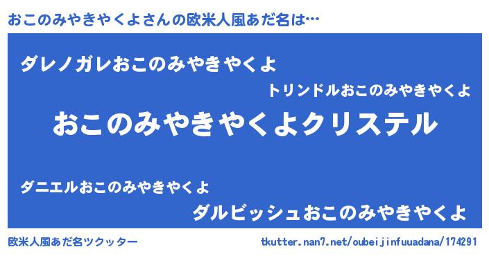 | 意味不明あだ名 | 『おこのみやきやくよフォーエバー』 |