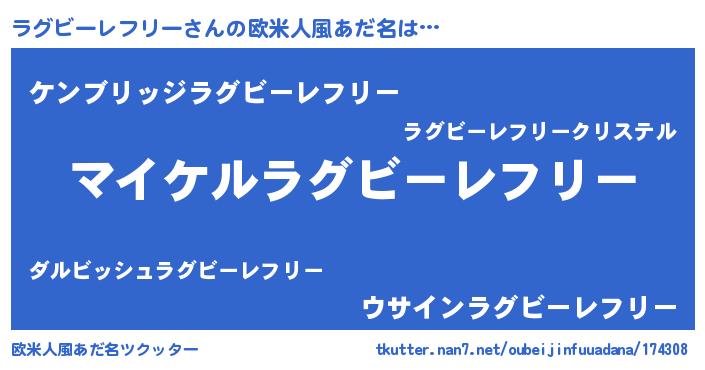 | ファンタジー風あだ名 | 『ラグフェル』『ゼラグトゥ』 |