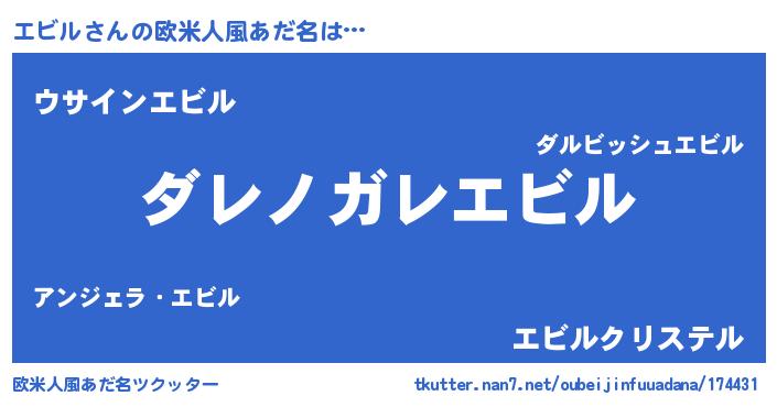 | 意味不明あだ名 | 『住所不定無職エビル(74歳)』『自称エビル』 |
