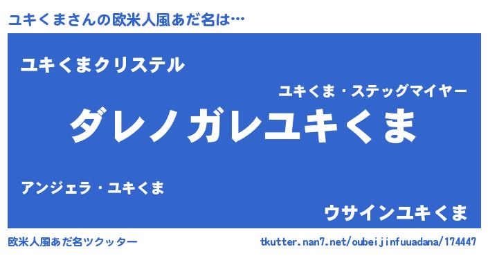 | 男性向けラノベタイトル風あだ名 | 『この素晴らしい世界にユキくまを!』 |