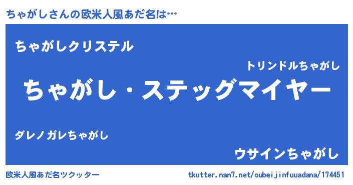 | 意味不明あだ名 | 『ちゃがしフォーエバー』 |