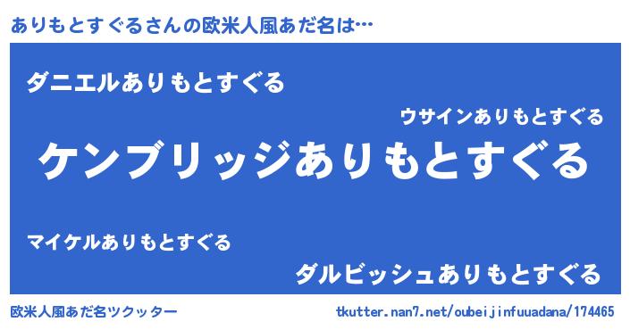 | 意味不明あだ名 | 『自称ありもとすぐる』 |