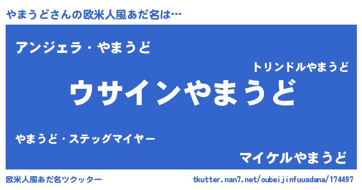 | 男性向けラノベタイトル風あだ名 | 『やまうどの嫁は女の子じゃないと思った?』 |