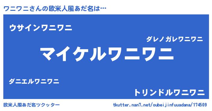 | 男性向けラノベタイトル風あだ名 | 『ワニワニの憂鬱』『ワニワニスレイヤー』 |