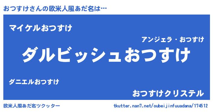 | 男性向けラノベタイトル風あだ名 | 『おつすけという概念が存在しない退屈な世界 』 |