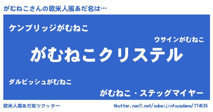 | 女子向けラノベタイトル風あだ名 | 『がむねこの雑貨屋さん』『闇のがむねこ』 |
