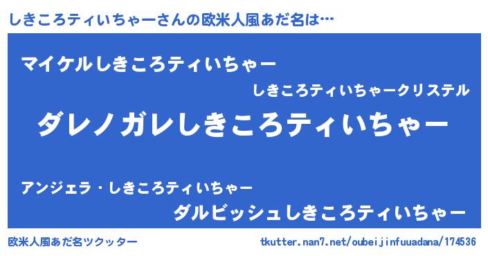 | 男性向けラノベタイトル風あだ名 | 『この素晴らしい世界にしきころティいちゃーを!』 |