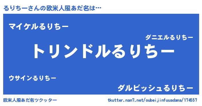 | 胡散臭い通販商品みたいなあだ名 | 『必ず成功するブレスレット…その名も「るりちー」』 |
