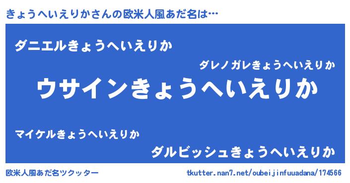 | 意味不明あだ名 | 『とにかく怪しいきょうへいえりか』 |