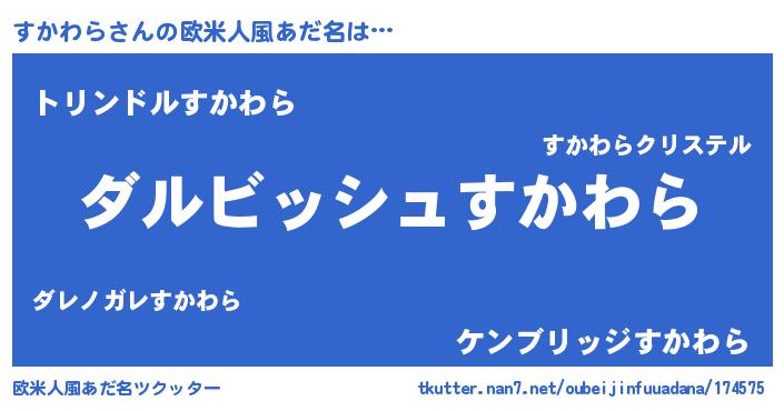 | 女子向けラノベタイトル風あだ名 | 『すかわらの契約王妃』『闇のすかわら』 |