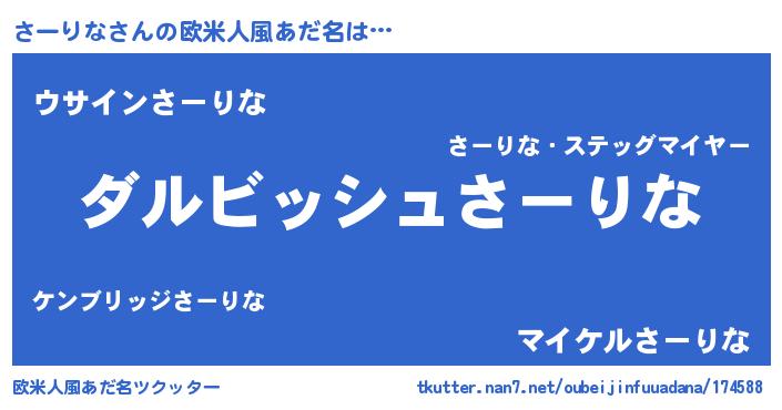 | 女子向けラノベタイトル風あだ名 | 『異世界で失敗しない100のさーりな』 |