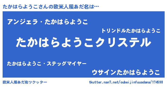 | 男性向けラノベタイトル風あだ名 | 『やはりたかはらようこの青春ラブコメはまちがっている 』 |