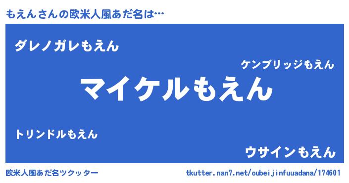 | ヒーロー風カッコイイあだ名 | 『スーパーモエン』『仮面モエダー』 |